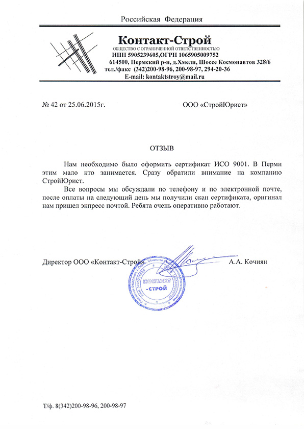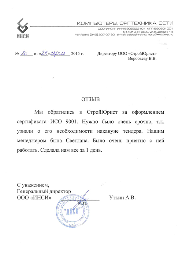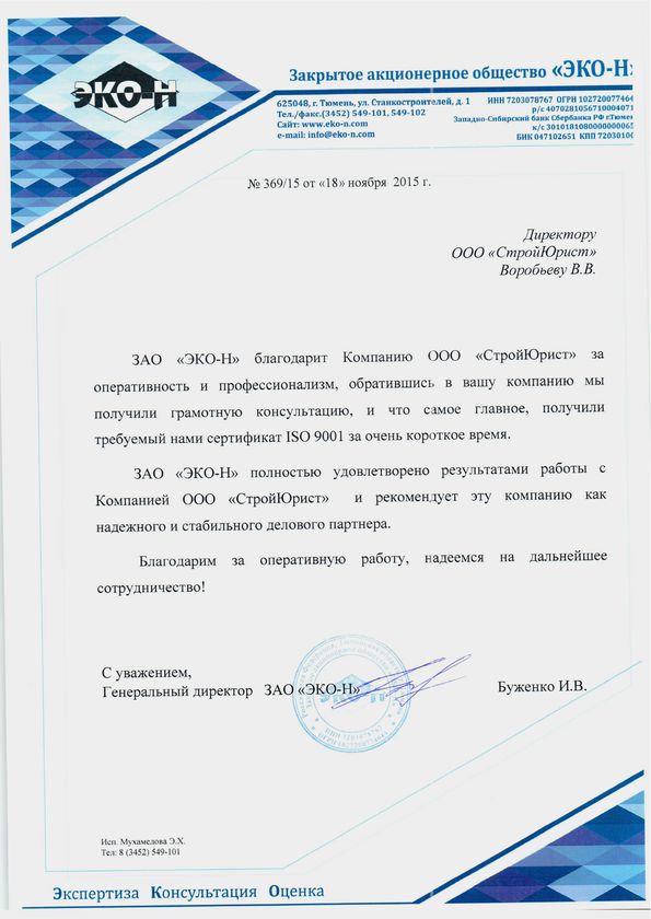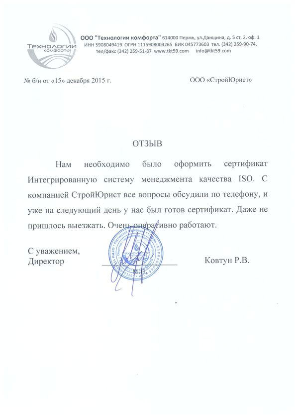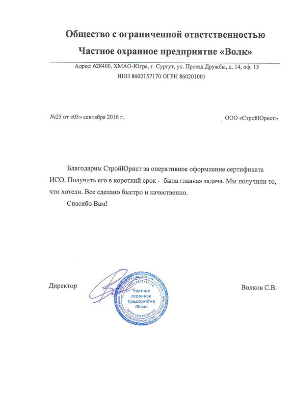 Отзывы клиентов "СтройЮрист" по ISO в Архангельске