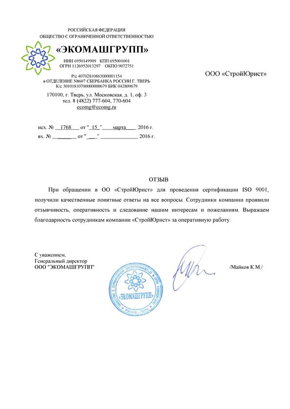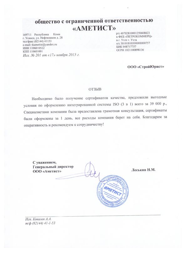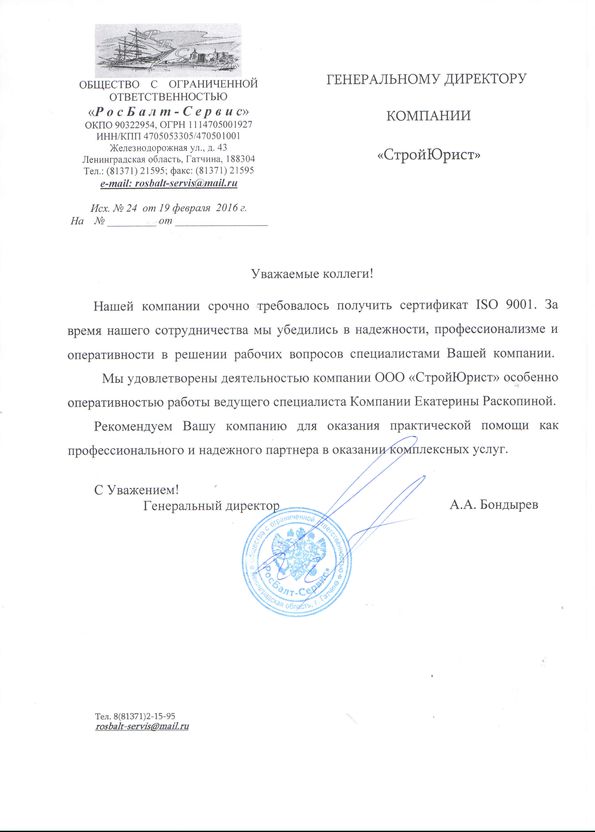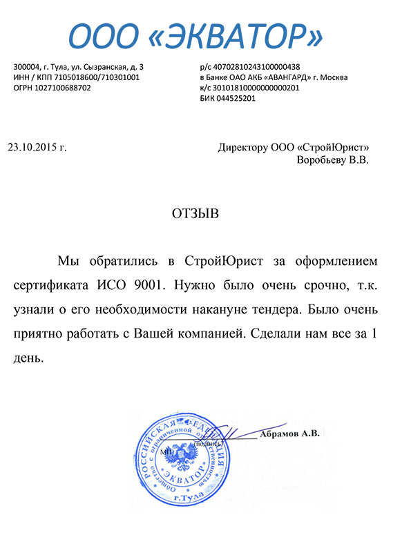 Отзывы клиентов "СтройЮрист" по ISO в Архангельске